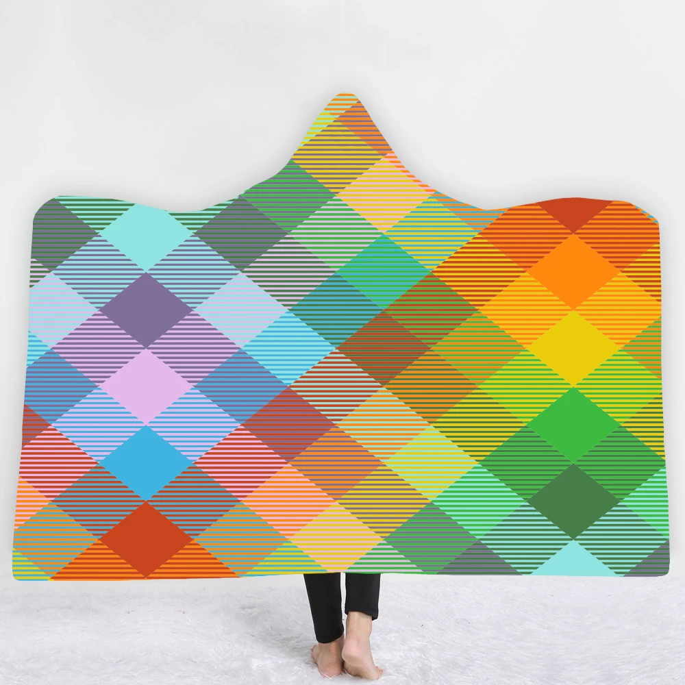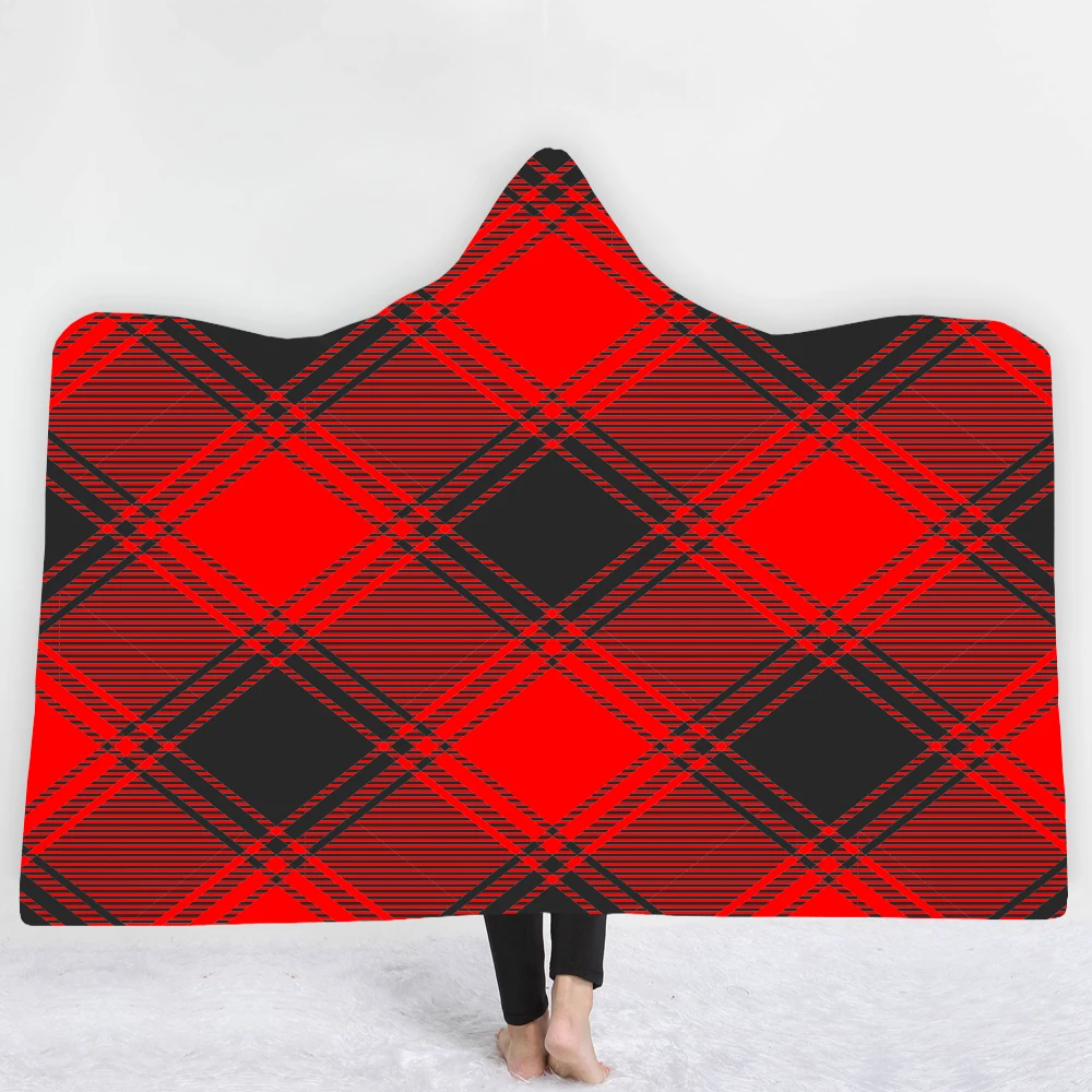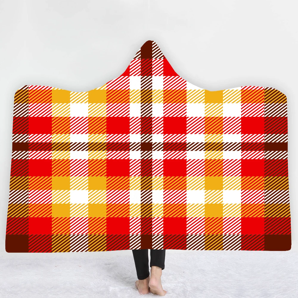 3D с принтом в клетку с капюшоном и Одеяло для женщины в английском стиле Стиль подстежка на искусственном меху из мягкой флисовой ткани, носимых пледы Одеяло микрофибра Семья постельные принадлежности 1,5*2 м/1,5*1,3 м