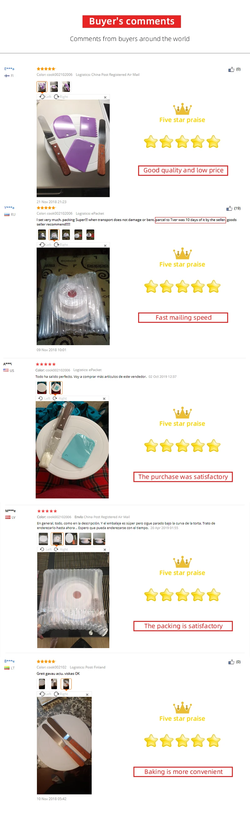 Идеальное сочетание украшения торта поставляет дополнительные 2 глазурные лопатки (прямые и изогнутые) и набор из 3 пластиковых скребок для торта. Это поможет вам создать все виды дизайнов на тортах