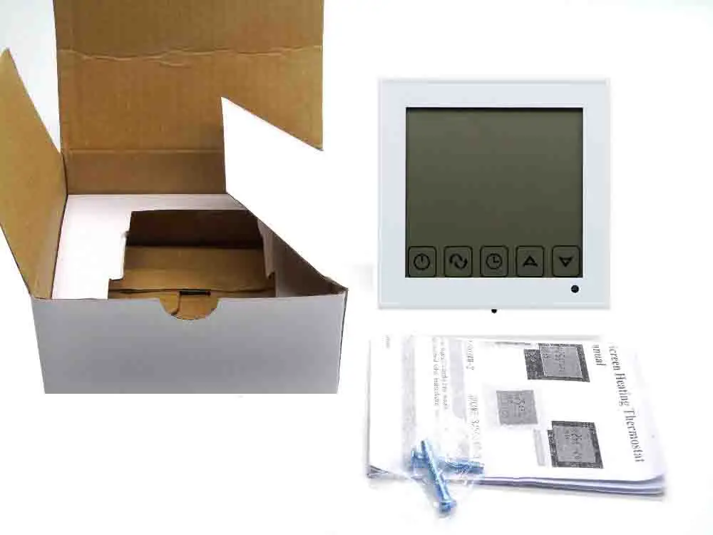 1 * термостат (белый) 2 монтажных винта 1 * Руководство пользователя для термостата (на английском языке)