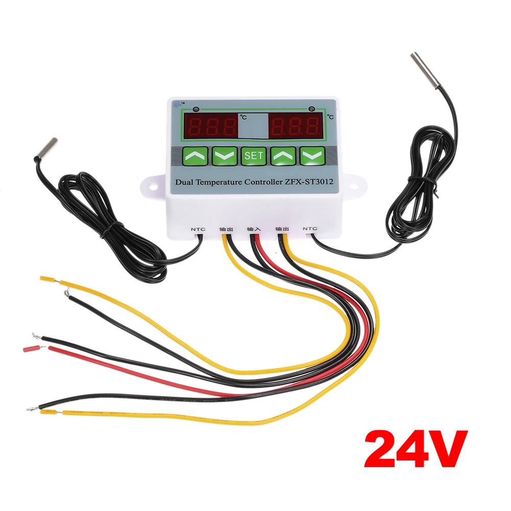 Это двойной дисплей и двойная регулировка температуры контроллер, который может контролировать охлаждение или нагревание двух продуктов. Простота установки, простота установки и использования.