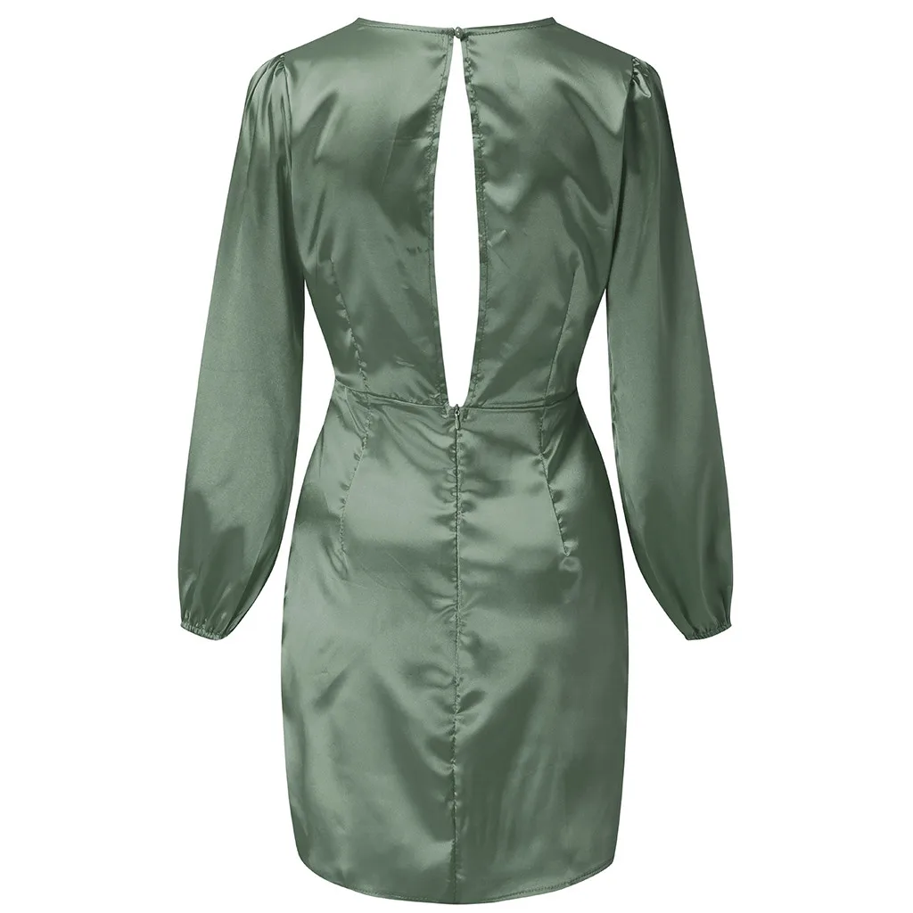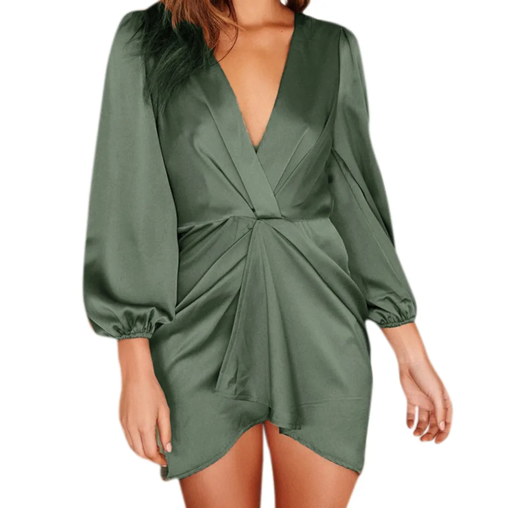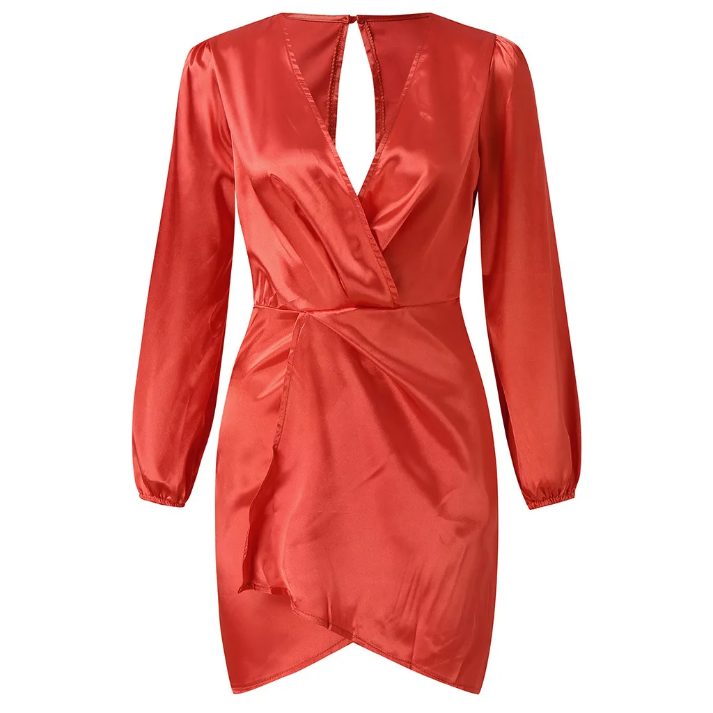 Модное женское сексуальное платье с длинным рукавом, Осеннее однотонное мини-платье с v-образным вырезом