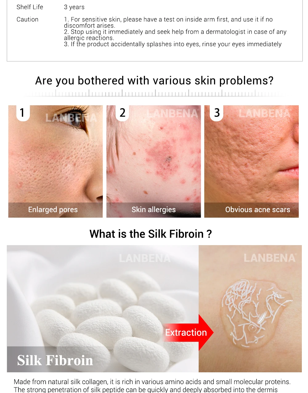 LANBENA Face Serum Hyaluronic Acid Serum Snail Serum Sliver Silk Ampoule Collagen Moisturizing Repair Skin Whitening Shrink Pore
