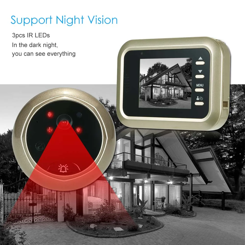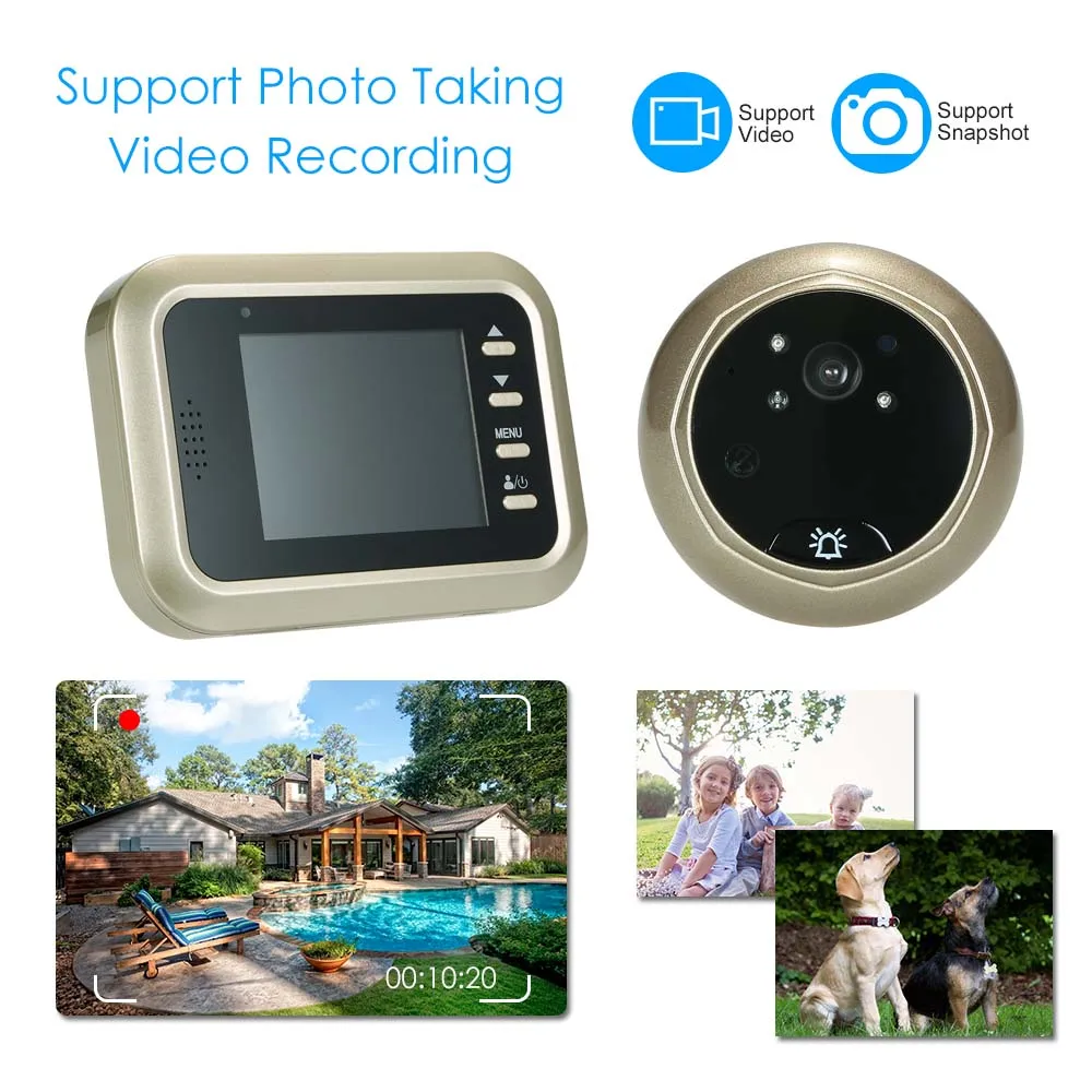 * 2,4 "ЖК-экран Внутренний дверной звонок с одной наружной ИК-глазок камеры, 160 ° Широкий угол обзора, почти может видеть всю окружающую среду на открытом воздухе.