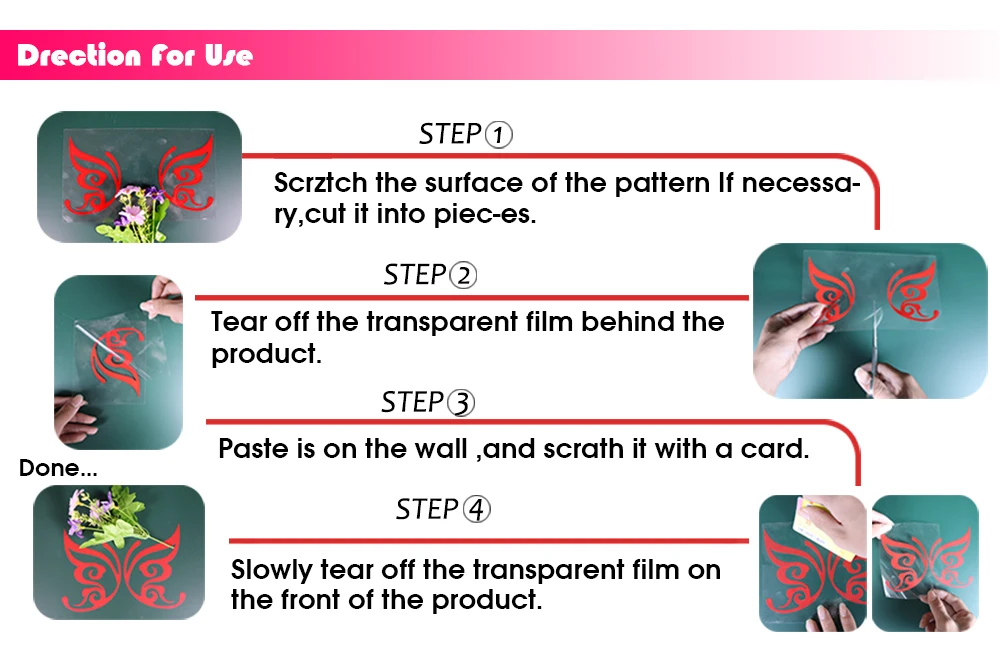 3.Мы используем высококачественный матовый винил, нетоксичный, экологичный, не теряющий качество сверхурочной работы, как напечатанные Переводные картинки.