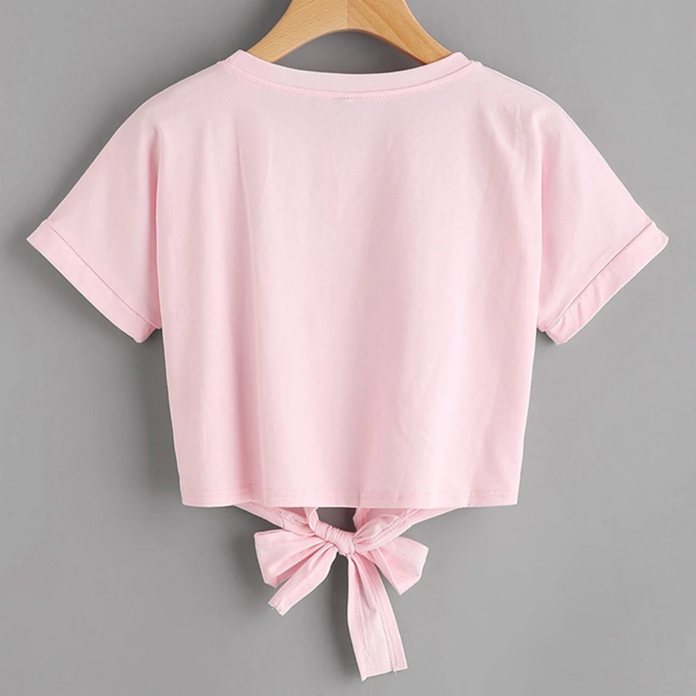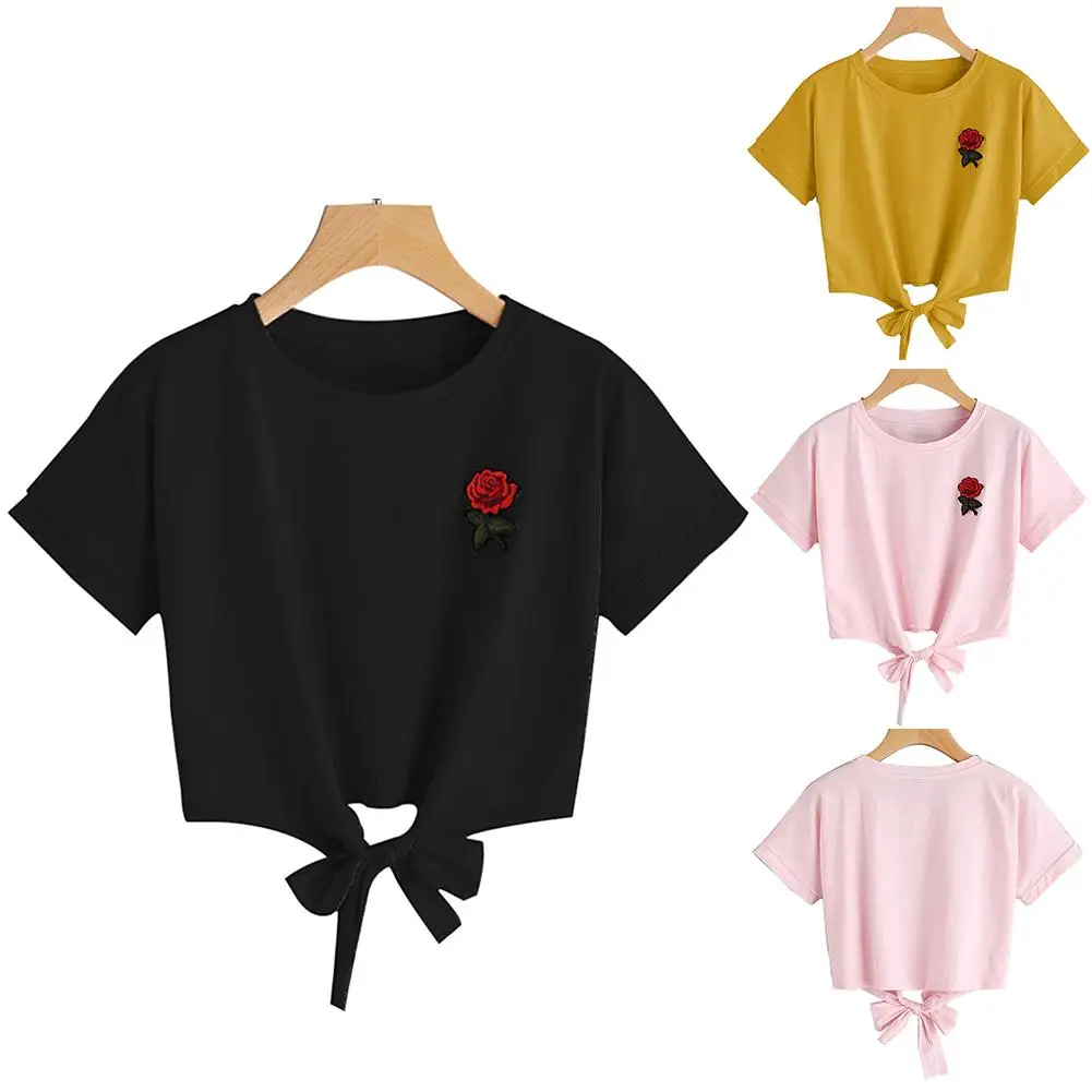 Женская футболка с вышивкой роз, модная летняя футболка с круглым вырезом и коротким рукавом, бандажный Топ