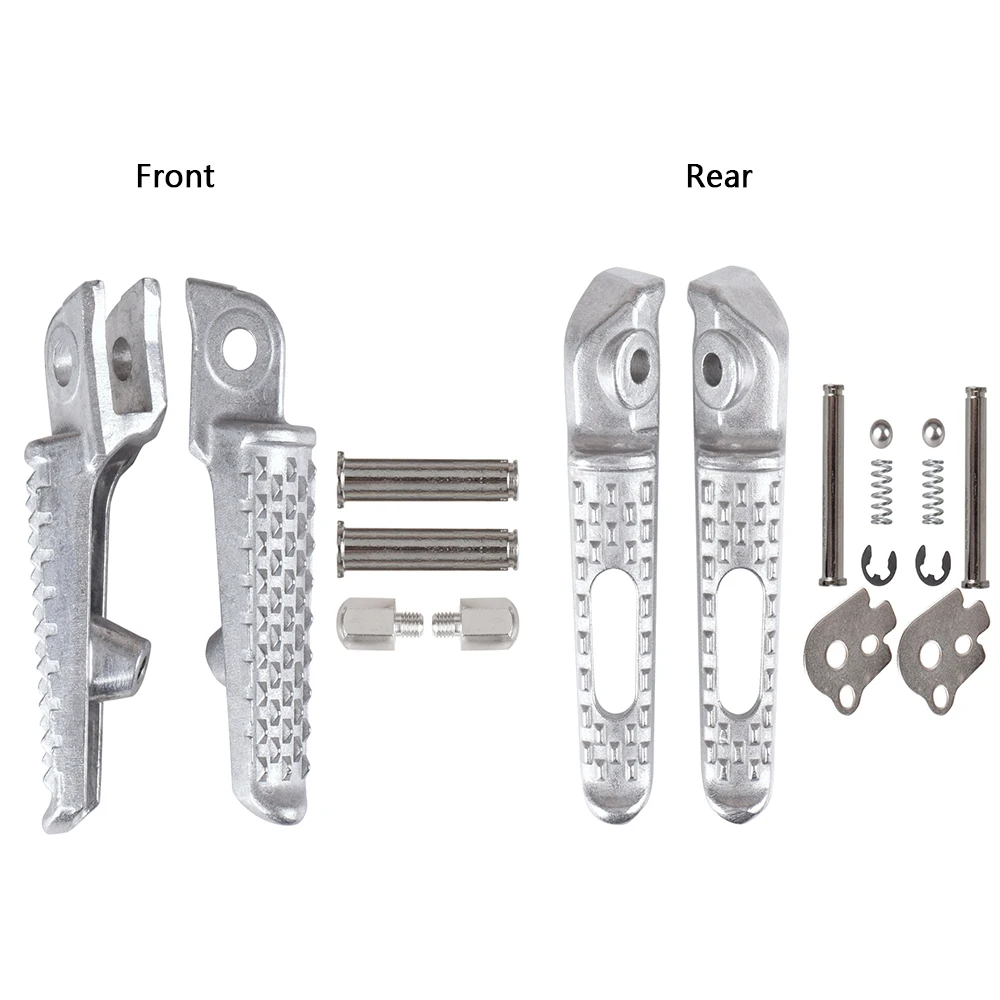 Наименование товара: мотоциклетные подножки Цвет: как показано на рисунке Материал: Алюминий Положение: спереди и сзади Состояние на 100% абсолютно новый, высокое качество 1. Высокое качество и очень прочный 2. Хорошее рабочее состояние и простота установки