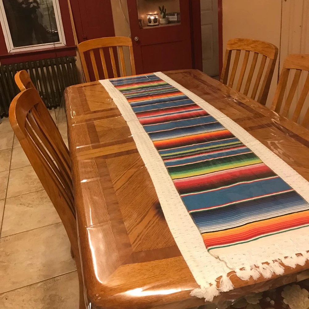 1. Скатерть принимает Классический Мексиканский узор в полоску, цвет яркий и vivid, и четыре стороны сшиты, что не легко расстегивается. Хорошие вечерние украшения