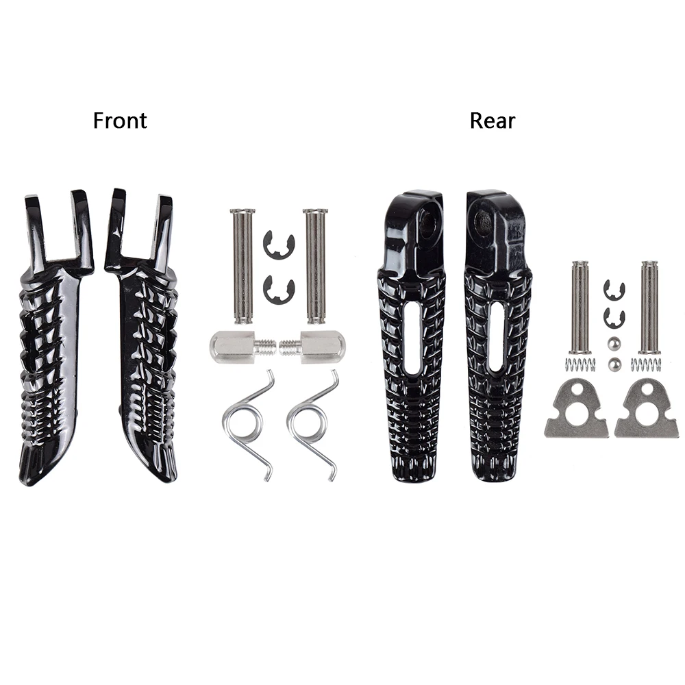 Наименование товара: мотоциклетные подножки Цвет: как показано на рисунке Материал: Алюминий Положение: спереди и сзади Состояние на 100% абсолютно новый, высокое качество 1. Высокое качество и очень прочный 2. Хорошее рабочее состояние и простота установки