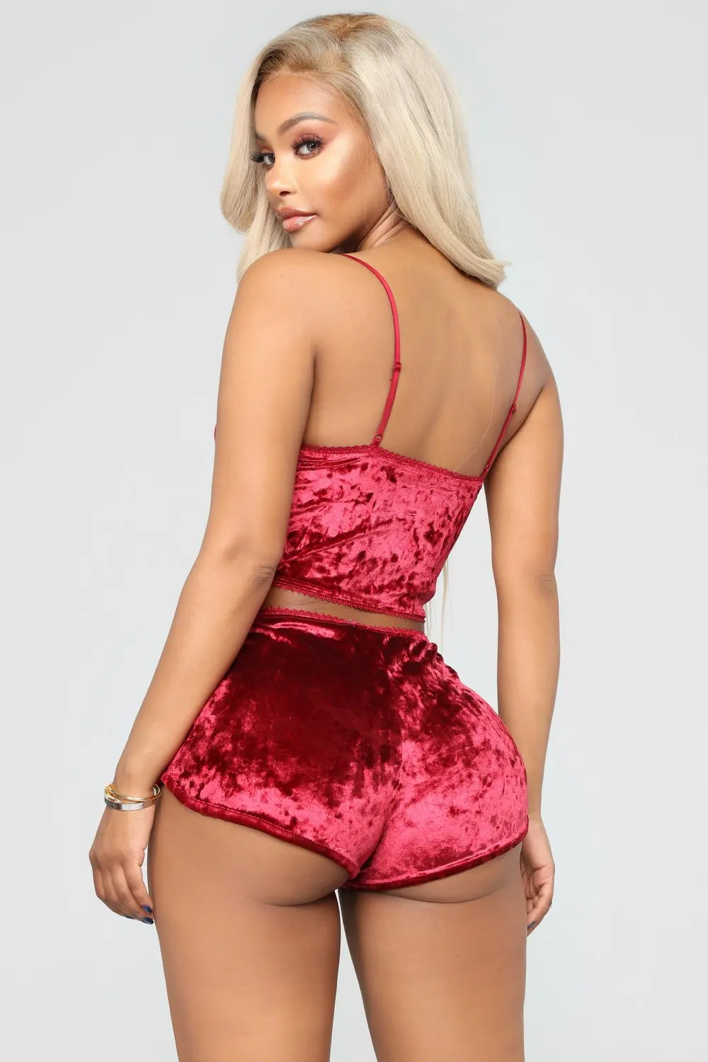 1 бархатный укороченный топ + бархатные шорты