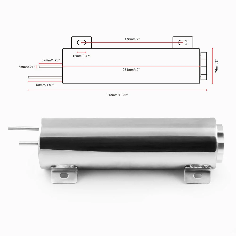 Хит продаж 3 "x 10" полированный автомобильный радиатор из нержавеющей стали, резервуар для перелива бутылок, набор универсальных резервуаров для охлаждающей жидкости