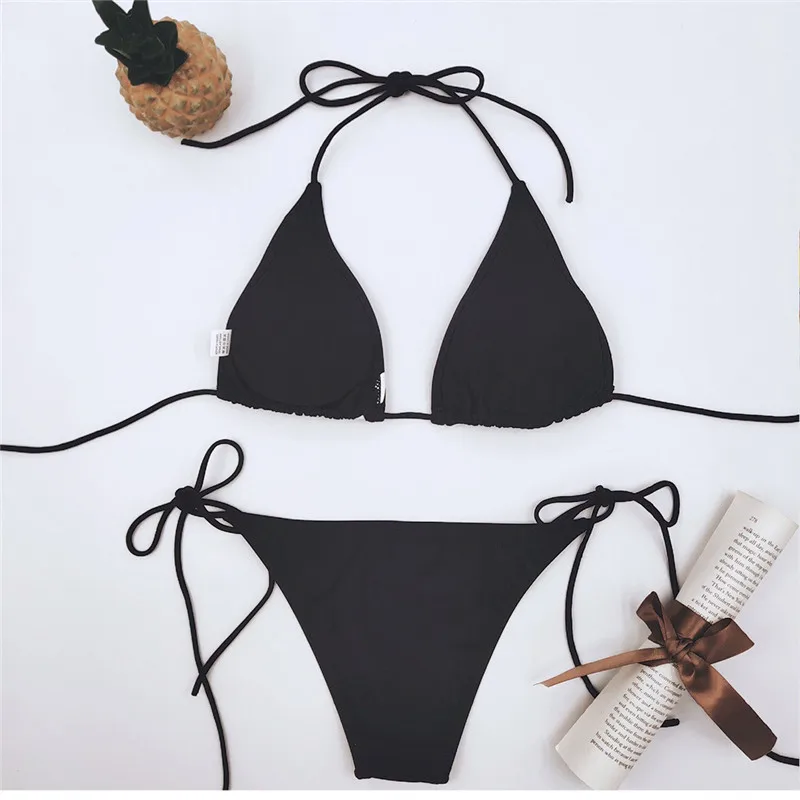 Женский купальник с пуш-апом, Раздельный купальник черного цвета, Бразильское бикини с высокой посадкой