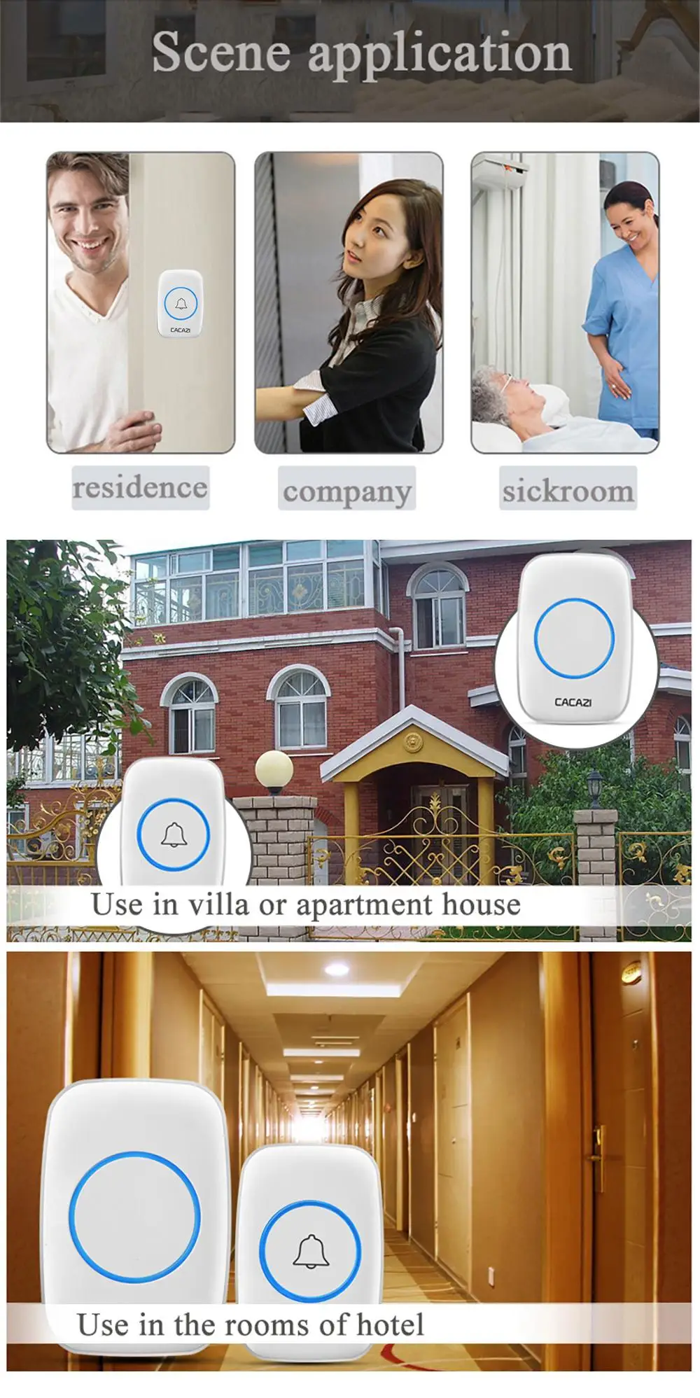 Дистанционный беспроводной дверной звонок комплект водонепроницаемый кнопочный дверной звонок с 38 колокольчиками светодиодный для домашнего офиса