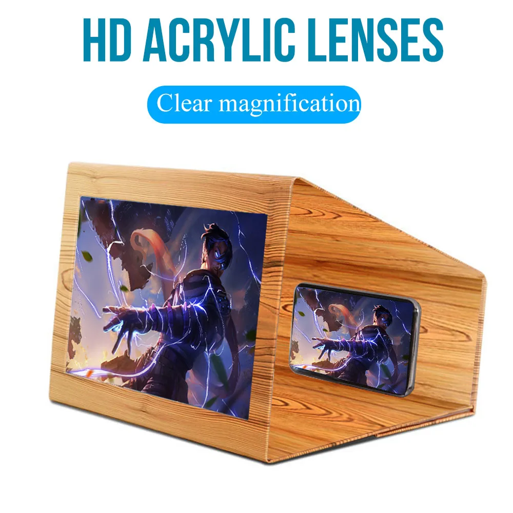 12 дюймов 3D сырая древесина увеличитель для экрана телефона из акрила HD видео усилитель складной устройство для увеличения настольная подставка складной держатель