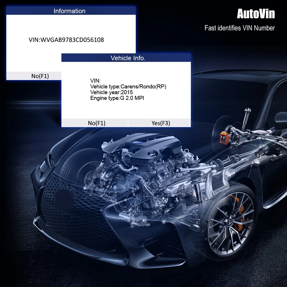Одним нажатием вы будете знать ваш автомобиль вин, год выпуска, модель автомобиля и тип двигателя.
