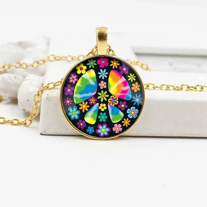 Europe and the United States new peace sign crystal glass pendant necklace popular jewelry accessories
