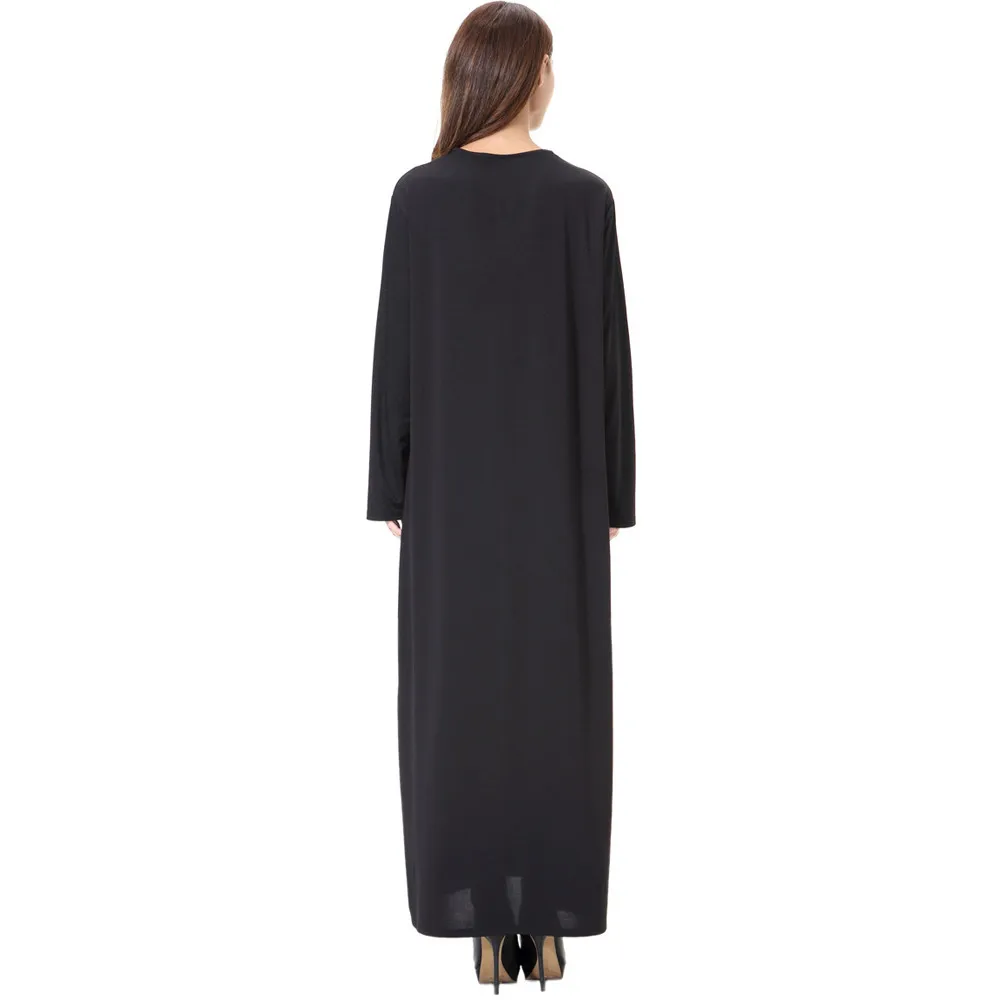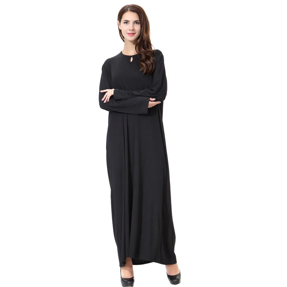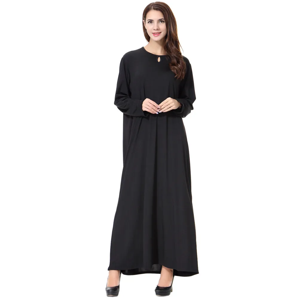 Повседневное платье с круглым вырезом, длинными рукавами и однотонным дизайном. Легкая и неэластичная ткань. Свободный силуэт.