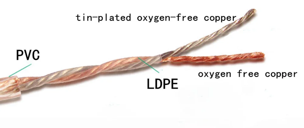 Структура проводника Многожильная медная проволока витая, и два проводника скручиваются вместе с определённой плотностью, чтобы лучше уменьшить помехи сигнала и точно передавать качество звука жара.