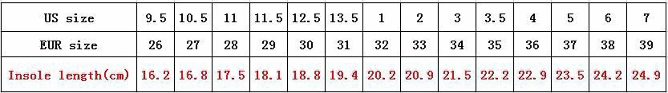 Обратите внимание: при покупке, пожалуйста, Измерьте длину своей ступни против сверьтесь с таблицей размеров Со ссылкой на таблицу размеров выше Например: Размеры 9,5 США = Размеры 26 EUR = 16,2 см Размеры 10,5 США = Размеры 27 EUR = 16,8 см Размер 11 US = 28 евро = 17,5 см Размеры 11,5 США = Размеры 29 EUR = 18,1 см Размеры 12,5 США = Размеры 30 EUR = 18,8 см Размеры 13,5 США = Размеры 31 EUR = 19,4 см Размеры 1 долл. США = Размеры 32 EUR = 20,2 см Размеры 2 = Размеры 33; Большие европейские = 20,9 см Размеры 3 = Размеры 34 EUR = 21,5 см Размеры 3,5 США = РАЗМЕР 35 EUR = 22,2 см Размер 4 США = Размер 36 EUR = 22,9 см Размеры 5 = Размеры 37 EUR = 23,5 см Размеры 6 США = размер 38 EUR = 24,2 см Размеры американский размер 7 = Размеры 39 евро = 24,9 см Перед отправкой, мы строго проверим, пожалуйста, будьте уверены в покупке