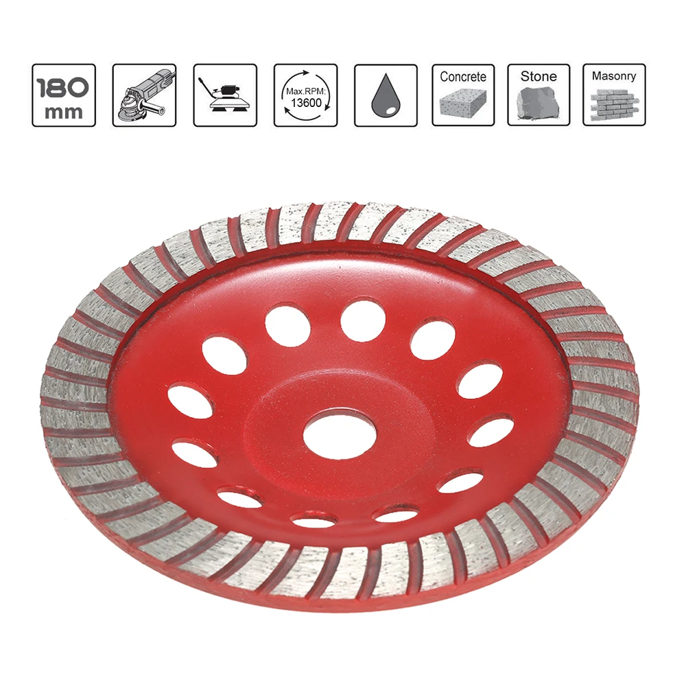 Это профессиональный шлифовальный диск для алмазных сегментов диаметром 180 мм, превосходное качество. Подходит для шлифовки каменной кладки, керамики, терраццо, мрамора, плитки, бетона, гранита и камня.