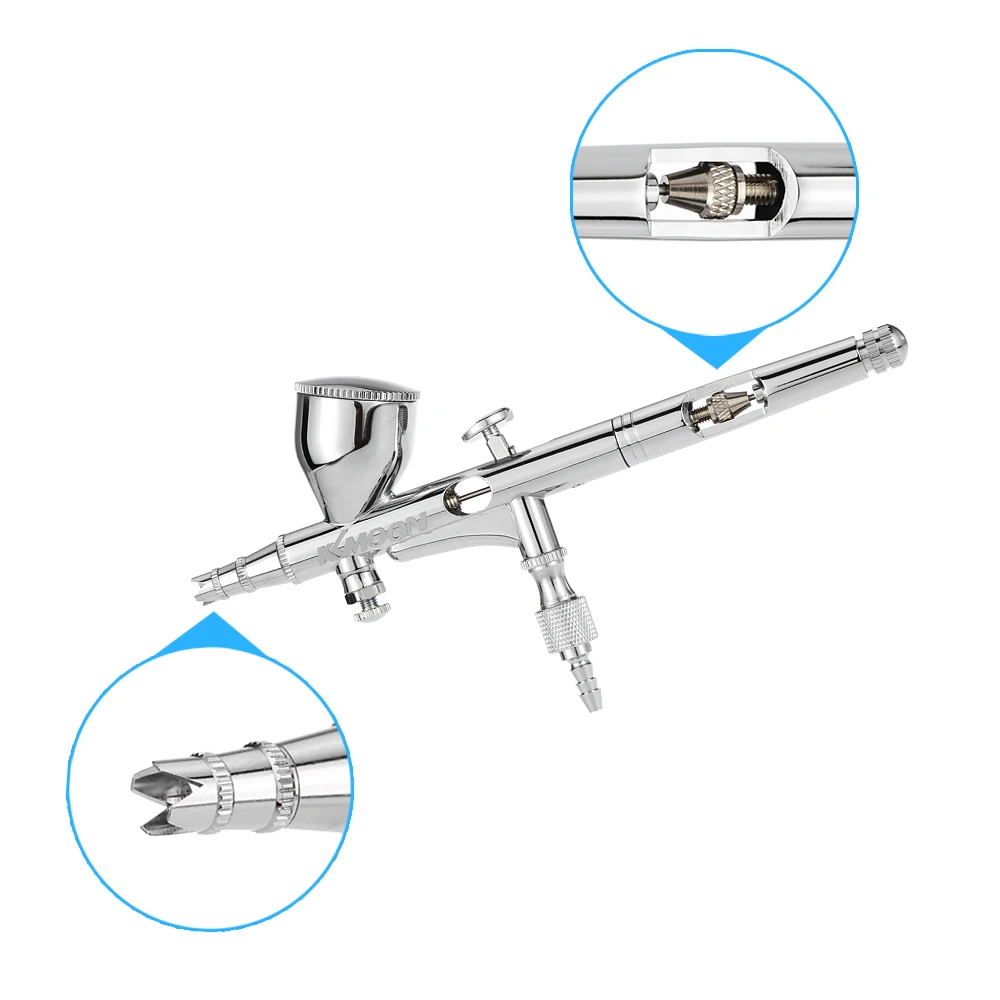 Воздушный регулирующий клапан на головке аэрографа обеспечивает точное управление мелким распылением.