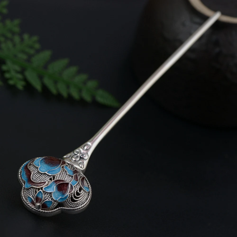 Винтажная трость для волос из тайского серебра Античная китайская шпилька серебряные шпильки для волос для женщин аксессуары для волос Свадебные украшения Pince Cheveux Femme WIGO1283