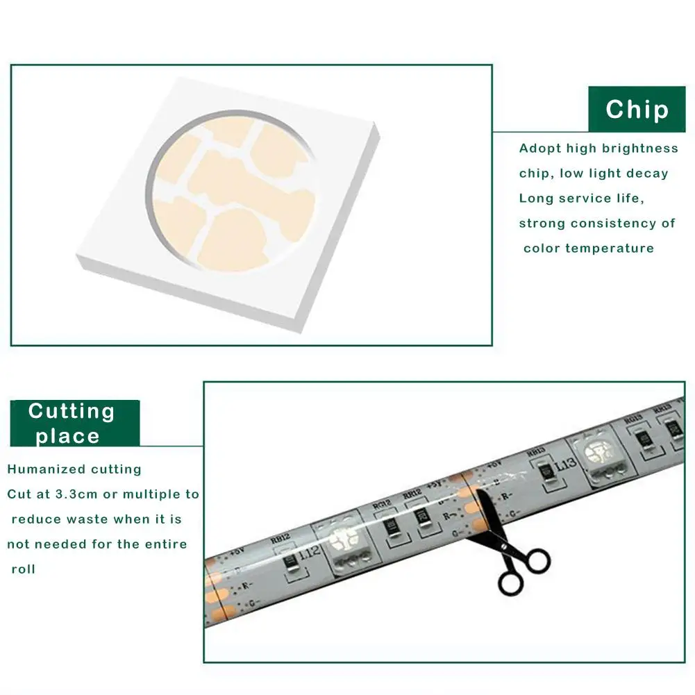 1. Длительный срок службы: высококачественный 5050 светодиодный; высокая яркость; Низкое энергопотребление; равномерный общий цвет света и длительный срок службы.Пульт дистанционного управления * 1