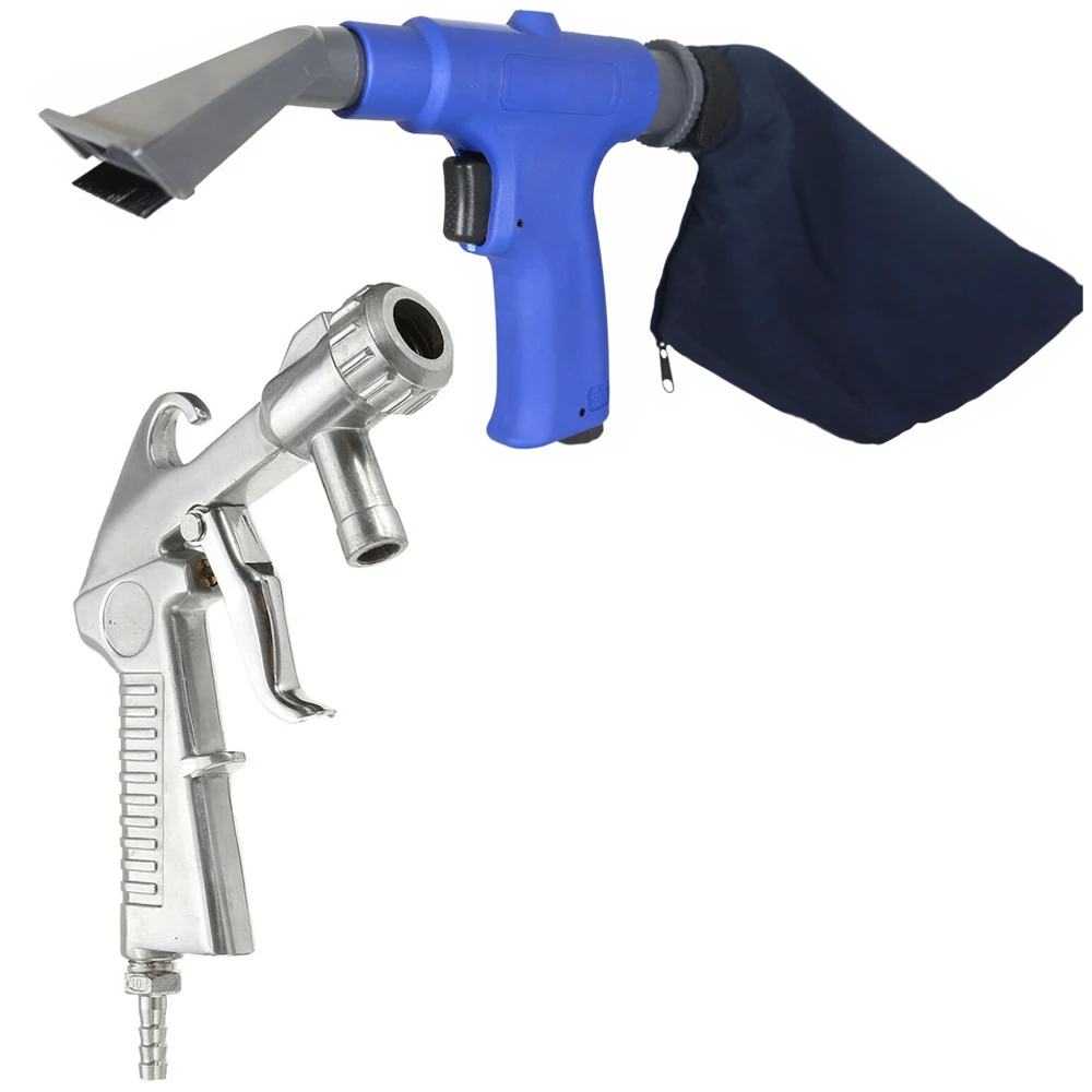 Включает в себя два практичных инструмента-пневматический нагнетательный всасывающий пистолет и пескоструйный аппарат, мы объединяем эти два инструмента для более эффективной работы.