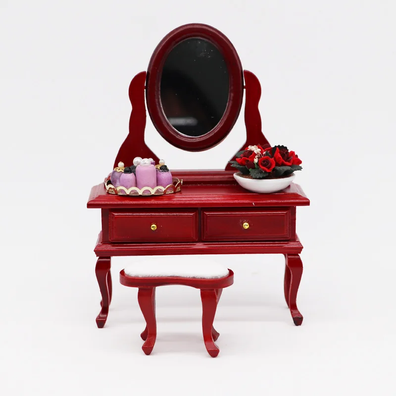 Кукольный Миниатюрный Европейский деревянный комод для спальни с зеркалом и табуретом