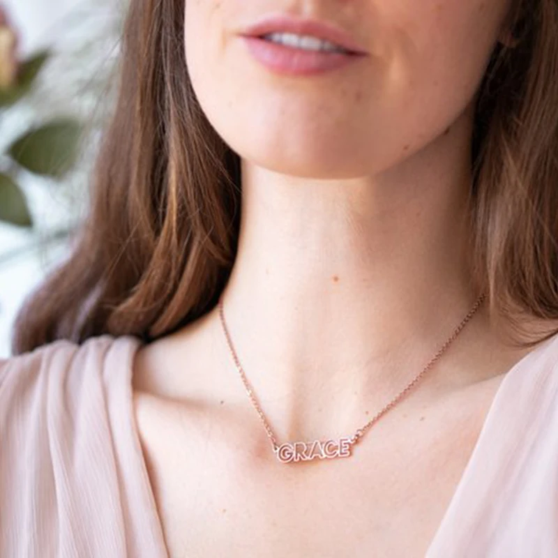 Custom Cut Out Name Necklace Stainless Steel Personalized Any Letter Nameplate Pendants For Women Men Birthday Jewelry Gift