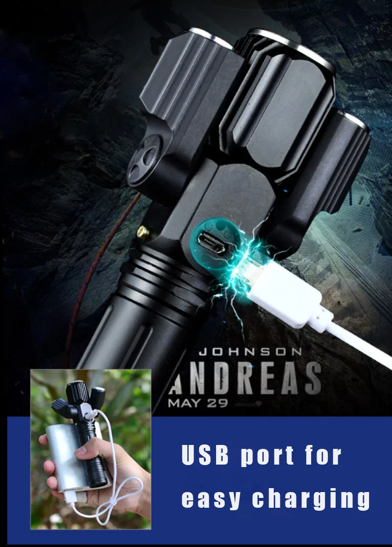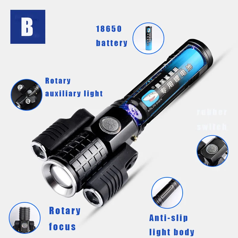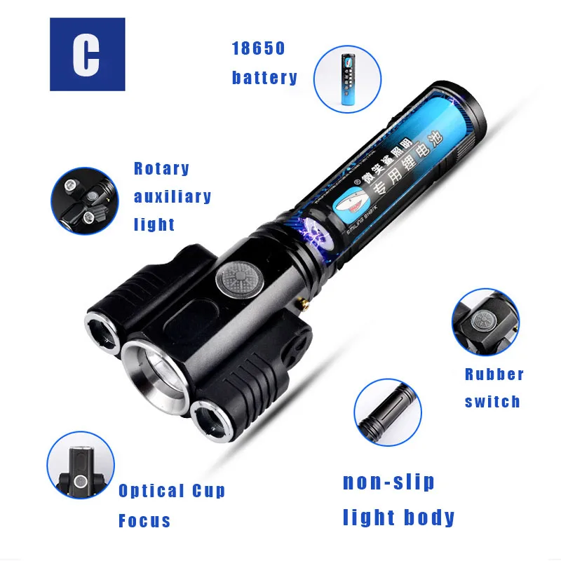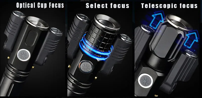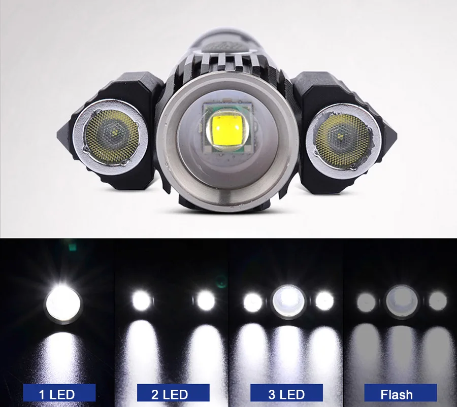 3 chip options: XPE, 300m range. T6, the range is 400 meters. L2, range 500 meters