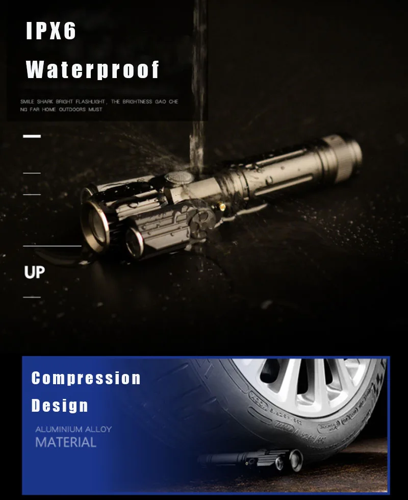 Waterproof and compressive: The waterproof grade is IPX6, which can be soaked in water for a short time. Aluminum alloy material, can withstand pressure and fall, durable.