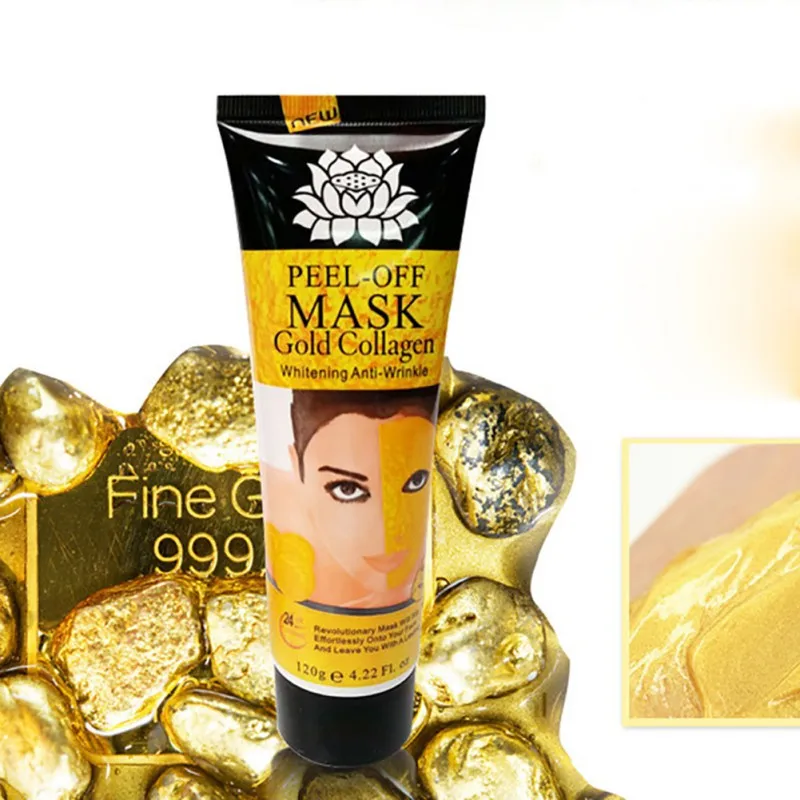 24K коллагеновая маска с золотом Отбеливающая, против морщин, отшелушивающая модная маска Сочетание растений collagan и использование только 99.99% чистых наночастиц золота 24 карата для пополнения и ускорения обновления коллагена, Minmise поры, смягчают и разглаживают внешний вид мелких складок и морщин, эта революционная маска легко соскальзывает на лицо и Оставьте вам стойкую сияющую молодость и просто великолепную голень.