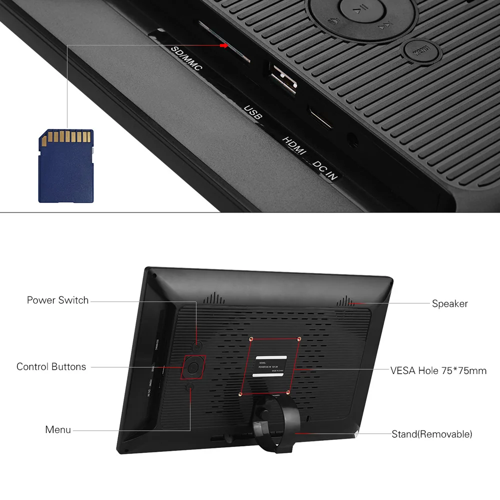 Поставляется со съемной задней стендой, может быть размещен на столе, или висеть на стене, так стабильно; поставляется с картой памяти 8 Гб, так экономично.