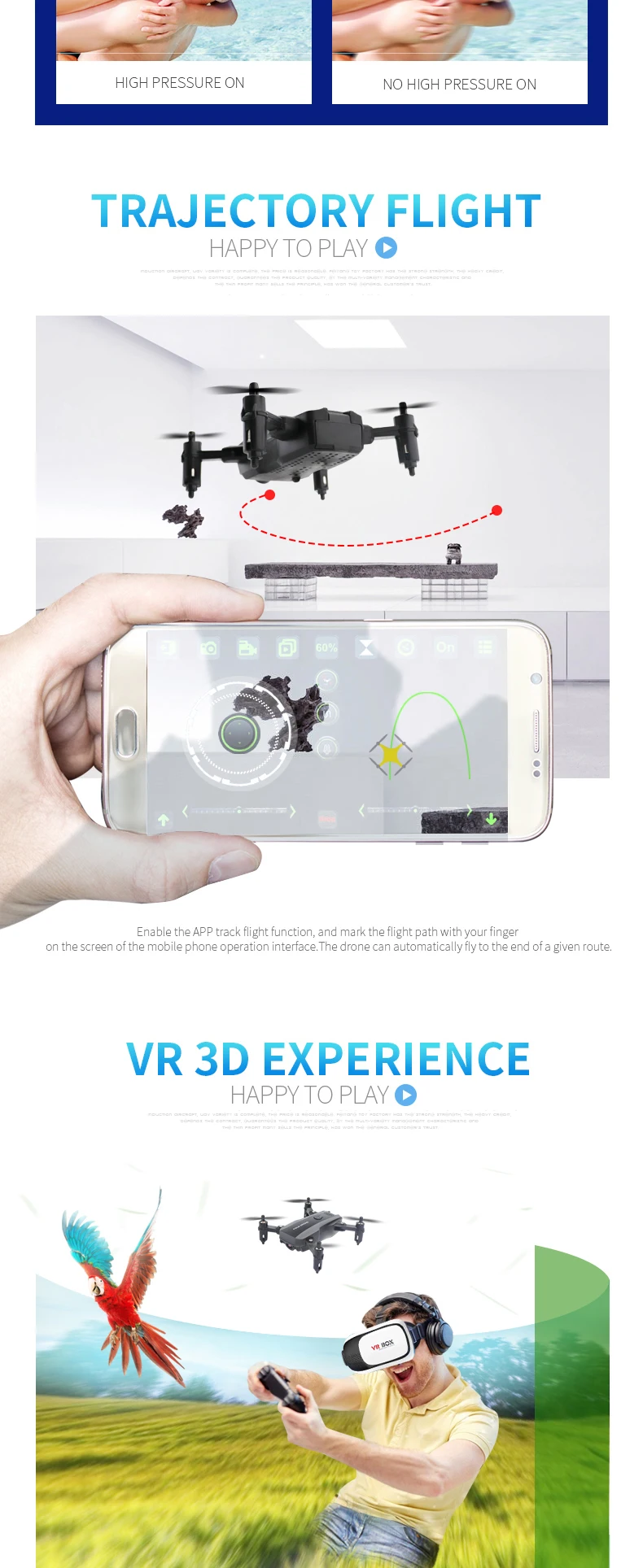 Название продукта Складной мини-Квадрокоптер Q30 Цвет продукта Черный/красный Размер продукта 10*11*3,2 см Размер упаковки Ключевые слова: 24*5,5*13,5 Пульт дистанционного управления 2,4 ГГц Канал продукта 4 канала Высота над уровнем моря В переменного тока, 50-70 м Дальность действия дистанционного управления: 70 м Датчик высоты 7 минут Время зарядки Около 90 минут Батарея фюзеляжа 3,7 V/500 mAh Батарейного блока с пультом дистанционного управления 3 шт., 7 батарей (собственные покупатели), часы Пульт дистанционного управления Самолет * 1, пульт дистанционного управления * 1, алюминиевый аккумулятор * 1, запасная воздушная фреза * 2, зарядная головка USB * 1, отвертка * 1, инструкция * 1, мобильный телефон с кронштейном * 1 (антенна), руководство пользователя приложения * 1 (версия wifi) Характеристики продукта 2,4G, четыре канала, шестиосевой гироскоп, высокая средние и низкие скорости предназначены для движения вверх, вниз, вперед, назад, влево, вправо, влево, вправо, fly, тонкой настройки. Поворот на 360 градусов спереди, справа, слева, справа, слева и справа. Безголовый режим; Одна клавиша для поворота, ослепительные огни, один ключ для взлета, один ключ, аварийная остановка
