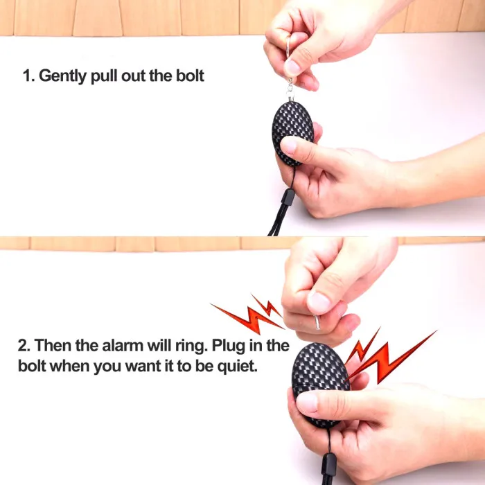 Вытащите штифт. Это будит, и звук будет громче и громче. Сигнал тревоги продлится 40-60 минут.