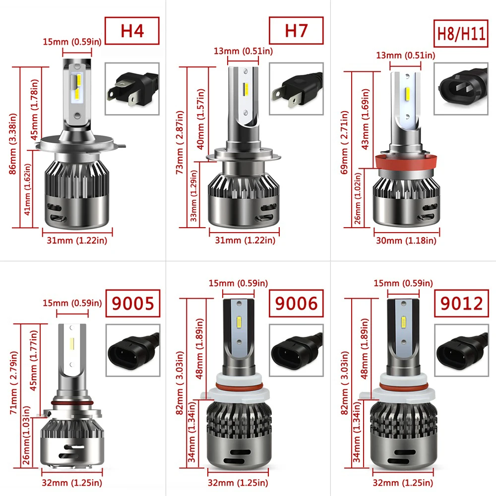 Standard: 2 pcs Led Headlight Bulbs
