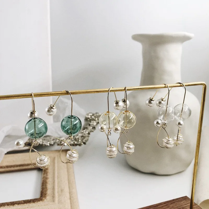 Висячие серьги в форме капель с жемчужным стеклянным шариком, модные серьги в форме капель, ювелирные украшения на годовщину, 2019