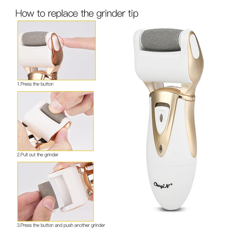 【 2 съемных шлифовальных головки】поставляется с 2 шлифовальными головками, толстой шлифовальной головкой для удаления мозолей и тонкой головкой для ежедневного ухода за ногами.