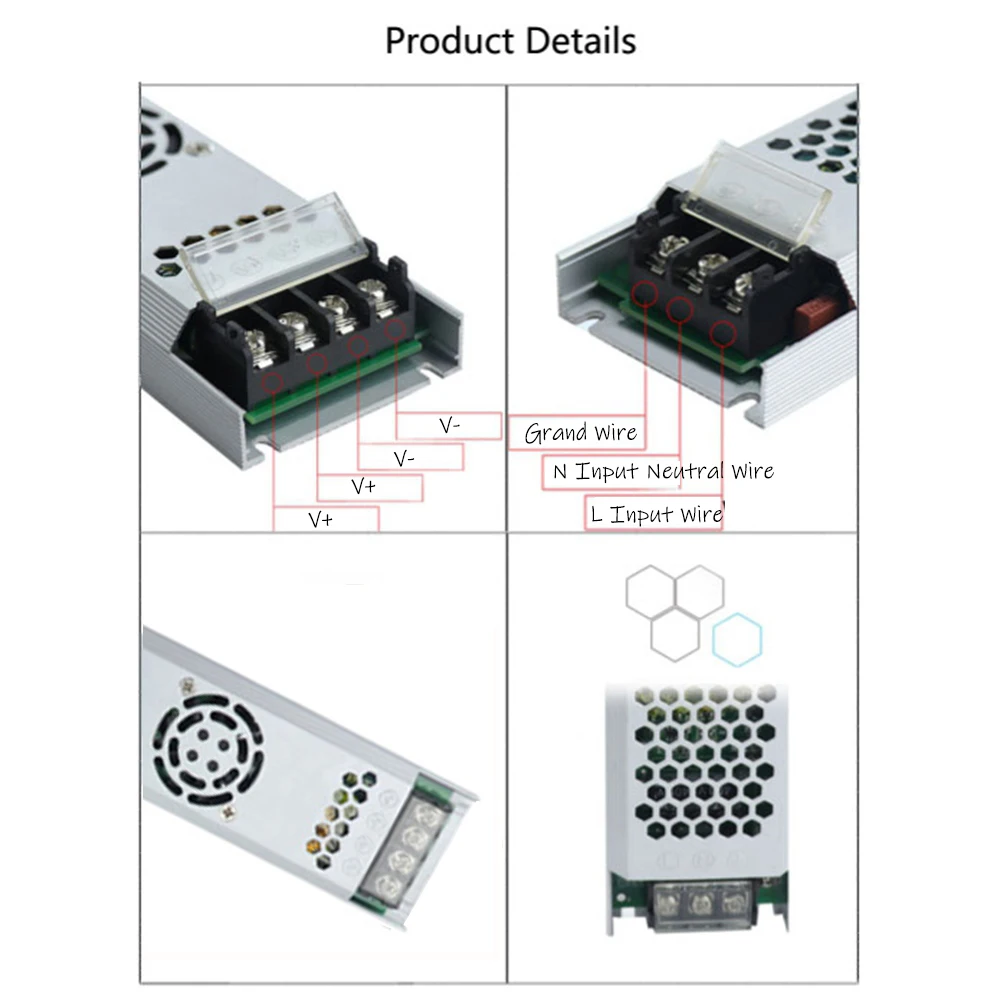 Без Prouducts Modle Prouducts Размер (мм) Вес (кг) 1 12V 60W 150*53*21 0,15 2 12V 100W 173*53*21 0,2 От 3 до 12V 150W 235*53*21 0,26 Размер на 4 до 12V 200W 307*53*21 0,35 5-12V 300W 307*53*21 0,35 6-24V 60W 150*53*21 0,15 7 24V 100W 173*53*21 0,2 8 24V 150W 235*53*21 0,26 9 24V 200W 307*53*21 0,35 10 24V 300W 307*53*21 0,35