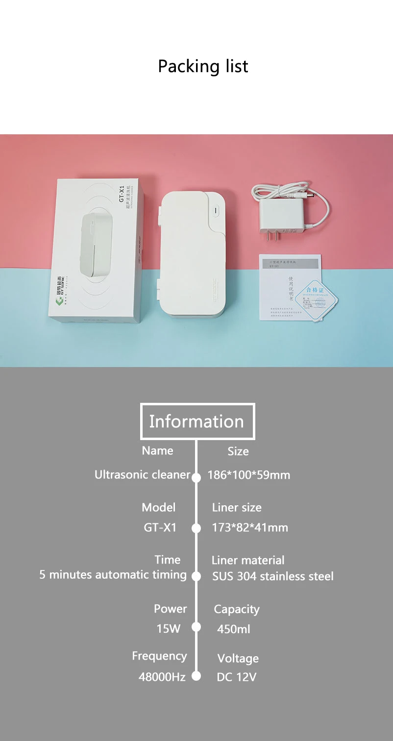 Мини Портативный Ультразвуковой очиститель контактные линзы ювелирные изделия очки устройство для очистки часов Таймер сверхтонкая коробка для хранения