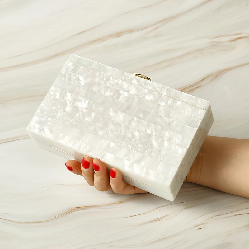 Жемчужно-белый или синий одинарный полосатый акриловый клатч для женщин Женский манжет в виде ракушки женская сумка на плечо вечерняя сумочка для свадьбы Размеры: 18X11X4,5 см Цвет: как на картинке Материал: акриловое волокно Внутри: черная ткань с о-образной цепочкой на 120 см Сейчас он очень популярен на рынке. OEM осблуживание Цена сейчас самая дешевая.