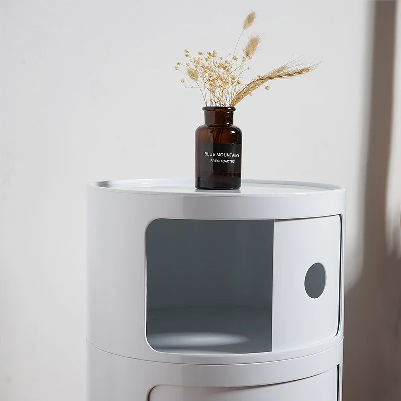 [Item]:Nordic simple ABS bedside storage cabinet modern sofa bedroom Nightstands 2 / 3 tier round storage Nordic Modern ABS Living RoomHol [COlor]White Material: ABS [Fixture Size]:2 layer 40cm /3 layer 58cm [Package]: 1pc* Empty shelf