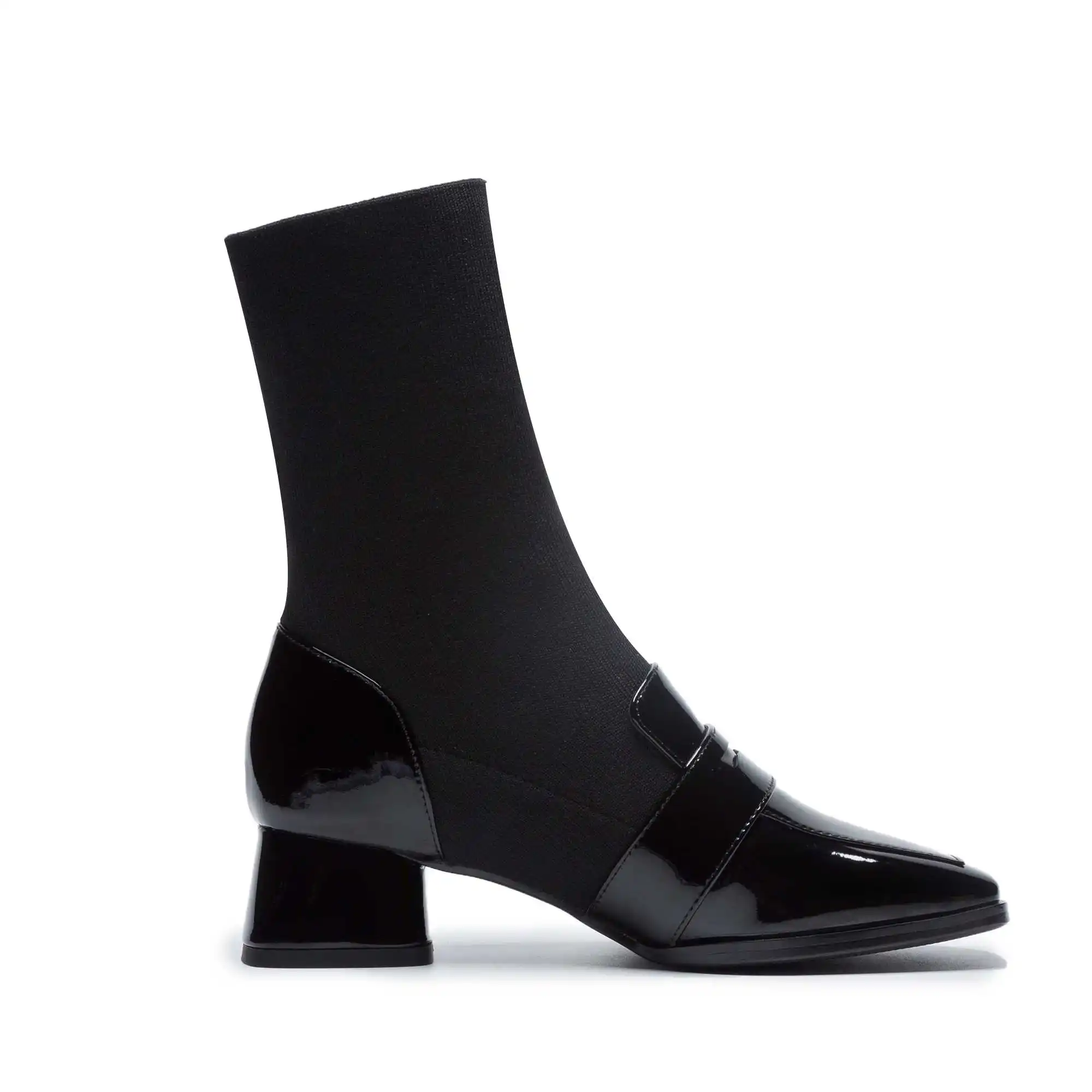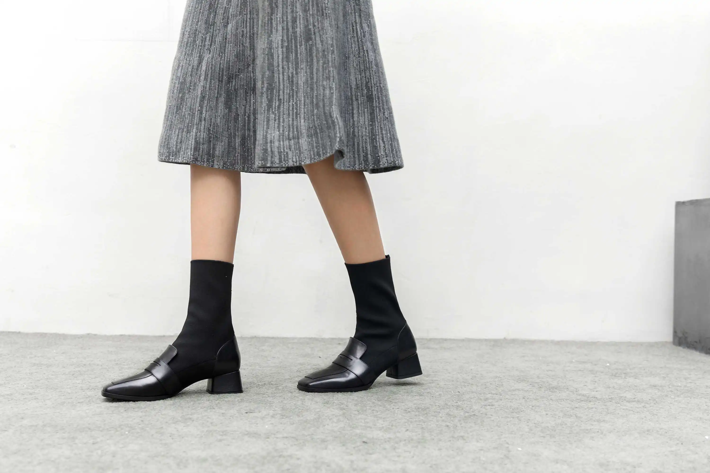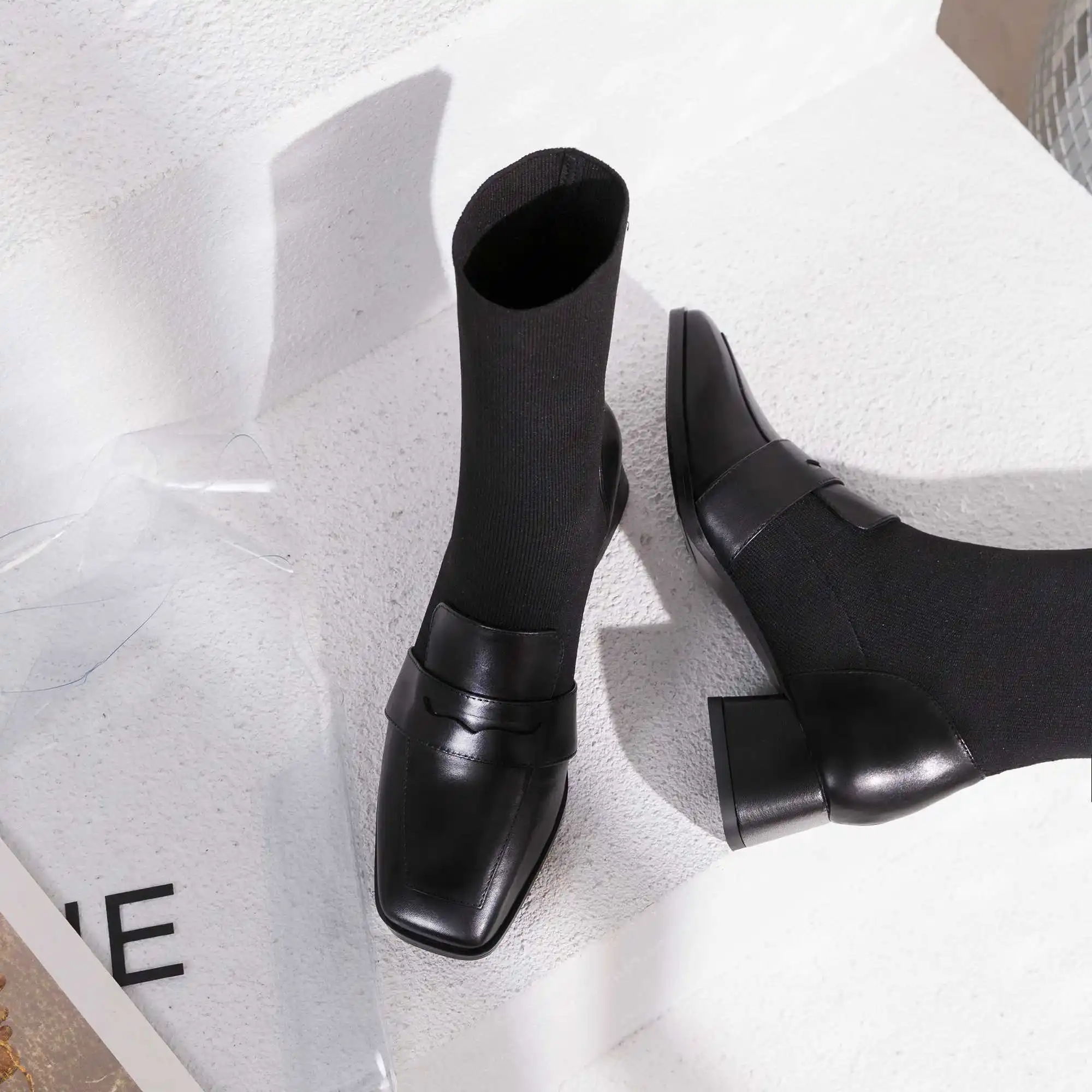 Материал верха: коровья кожа Материал вала l: вязание Внутренний материал: короткий плюш Высота каблука: 4 см