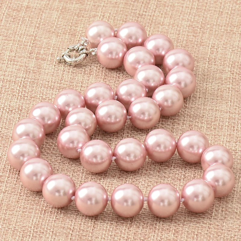 Романтический розовый жемчуг 14 мм выбрать размер цепочки ожерелье ручной работы DIY ожерелье искусственного жемчуга массивные женские подарки 18 дюймов H819
