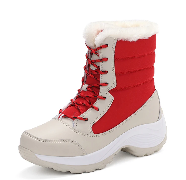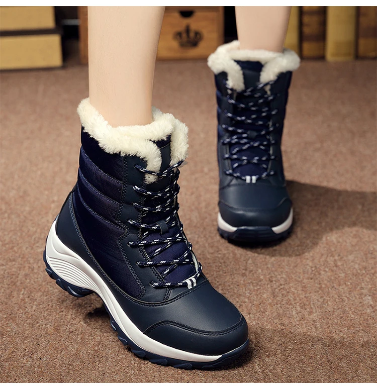 Женские ботинки, зимние ботинки на шнуровке, теплые меховые ботильоны на платформе, зима 2019