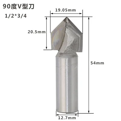 1 шт. 1/4 "1/2" хвостовик 90 градусов V паз древесины маршрутизатор бит 6,35 мм/12,7 мм хвостовик Гравировка-Деревообработка-инструмент торцовочный паз бит