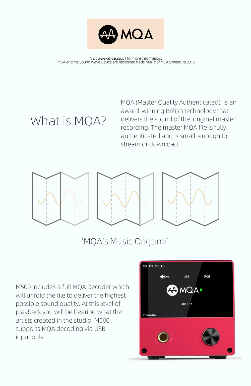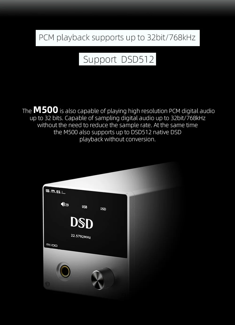SMSL M500 MQA DAC/Amp-это новейший продукт линейки M-Series, которая была построена, чтобы быть лучшим MQA DAC/Amp под $1000. Используя верхнюю часть линейки чипов ES9038PRO D/A и поддерживающую технологию MQA (проверка качества Master), а также другие высококачественные компоненты, SMSL поставил M500 со спецификациями, соперничающими с DAC/Amps в три раза по его цене.