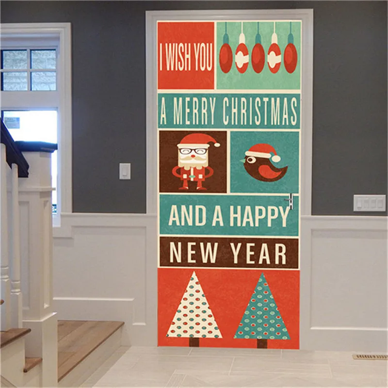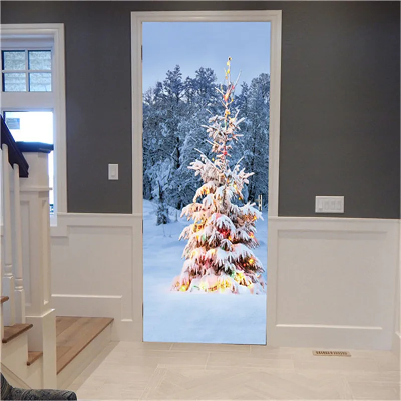 Наименование товара: рождественские наклейки на дверь Снежной Королевы для детской спальни, Новогоднее украшение из ПВХ, съемные обои на двери, рождественские подарки