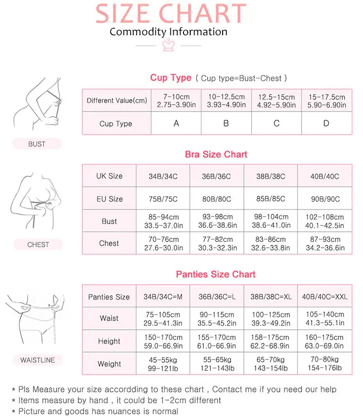 Бренд: PROBRA Все товары могут быть отправлены в течение 24-72 часов. Тип товара: бюстгальтеры Пол: женщин Тип Поддержки: без проводов Тип ремешка: регулируемые ремни Тип застежки: застежка сзади, застежка спереди, четыре ряда с крючками Функция: кормление сном Особенности: уход за ребенком, для беременных Размер: 34/75 - 36/80 - 38/85 - 40/90 О размере: Мы предлагаем вам выбрать на размер больше, чем вы обычно носите. Например: вы обычно носите 70B, вы можете выбрать размер 75C на этом изделии. Таблица размеров бюстгальтера Размер Великобритании: 34B/34C Размер ЕС: 75B/75C Обхват груди: 85-94 см/33,5-дюйма Обхват груди: 70-76 см/27,6-дюйма Размер UK: 36B/36C размер EU: 80B/80C бюст: 93-98 см/36,6-дюйма Обхват груди: 77-82 см/30,3-дюйма Размер Великобритании: 38B/38C Размер ЕС: 85B/85C Обхват груди: 98-104 см/38,6-дюйма Обхват груди: 83-86 см/32,6-дюйма Размер Великобритании: 40B/40C Размер ЕС: 90B/90C бюст: 102-108 см/40,1-дюйма Обхват груди: 87-93/34, 2-дюйма