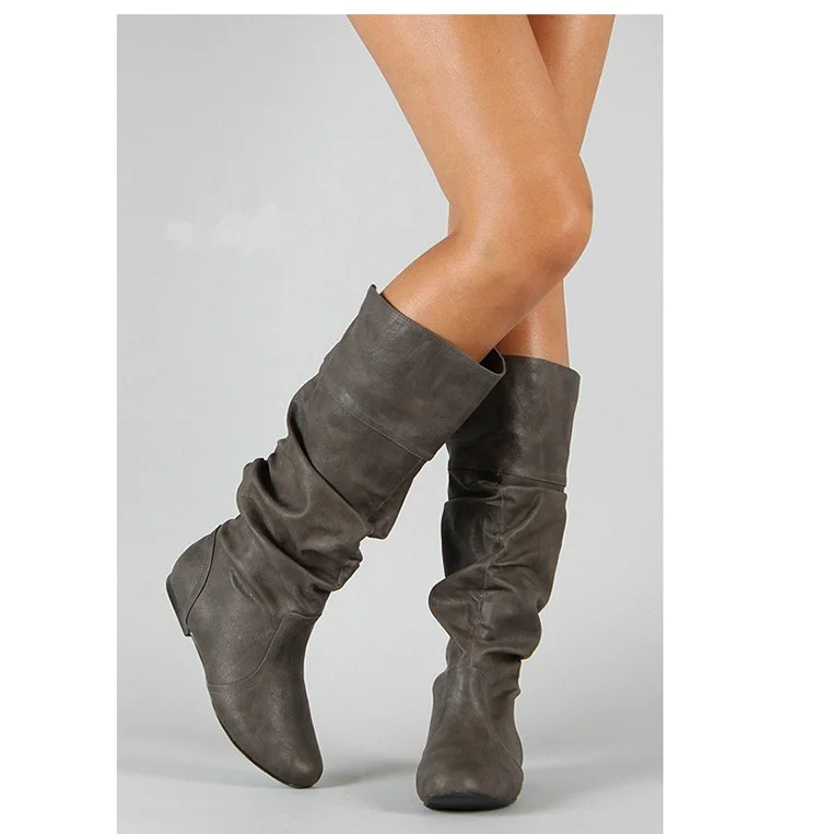 Женские ботинки с круглым носком, повседневные ботинки с высоким голенищем, Осень-зима 2019